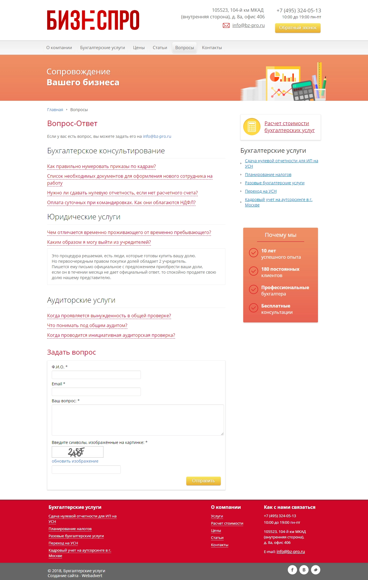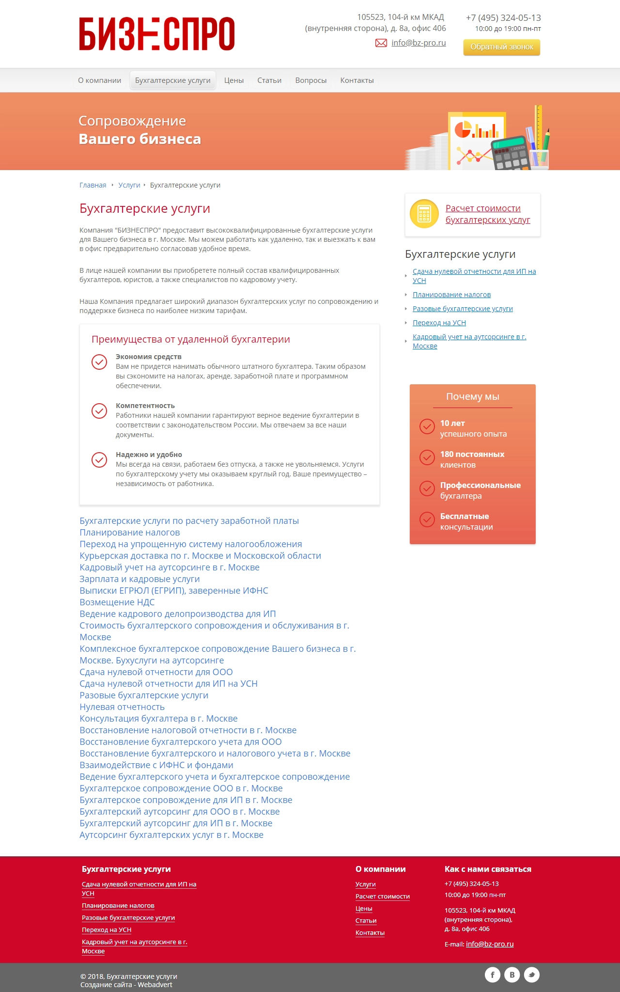 БИЗНЕСПРО - пример сайта бухгалтерских услуг