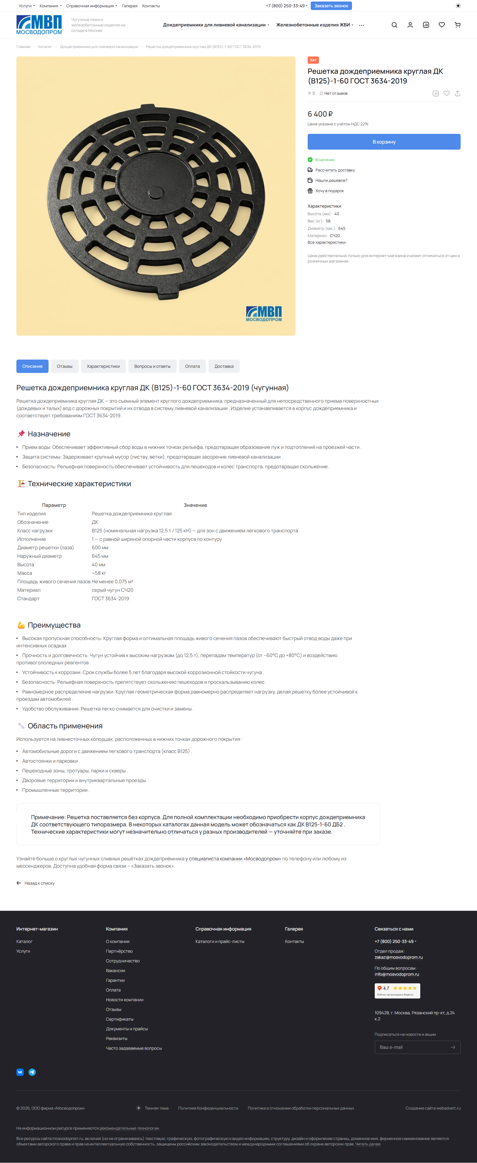 "Мосводопром" - изготовление и продажа литейных изделий
